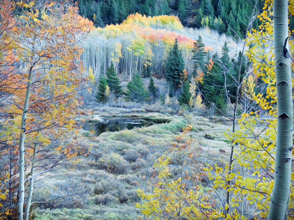 A young man, Terrance Zhou, who goes by Ming, requested to go on a hike with me in the mountains. We left in the afternoon of October 4th and were hiking the Abyss Lake Trail at 4:30 PM. The late arrival was a blessing because there was a great traffic jam going to the other direction on Geneva road to Grant that we did not experience when we left in the evening. Ming took an opportunity to reflect on God’s goodness in a prayer along a stream. We went off the trail through the tall aspens with thanksgiving that we can know the Creator-God, who made trees clap and mountains sing as He leads us forward with peace and joy.
